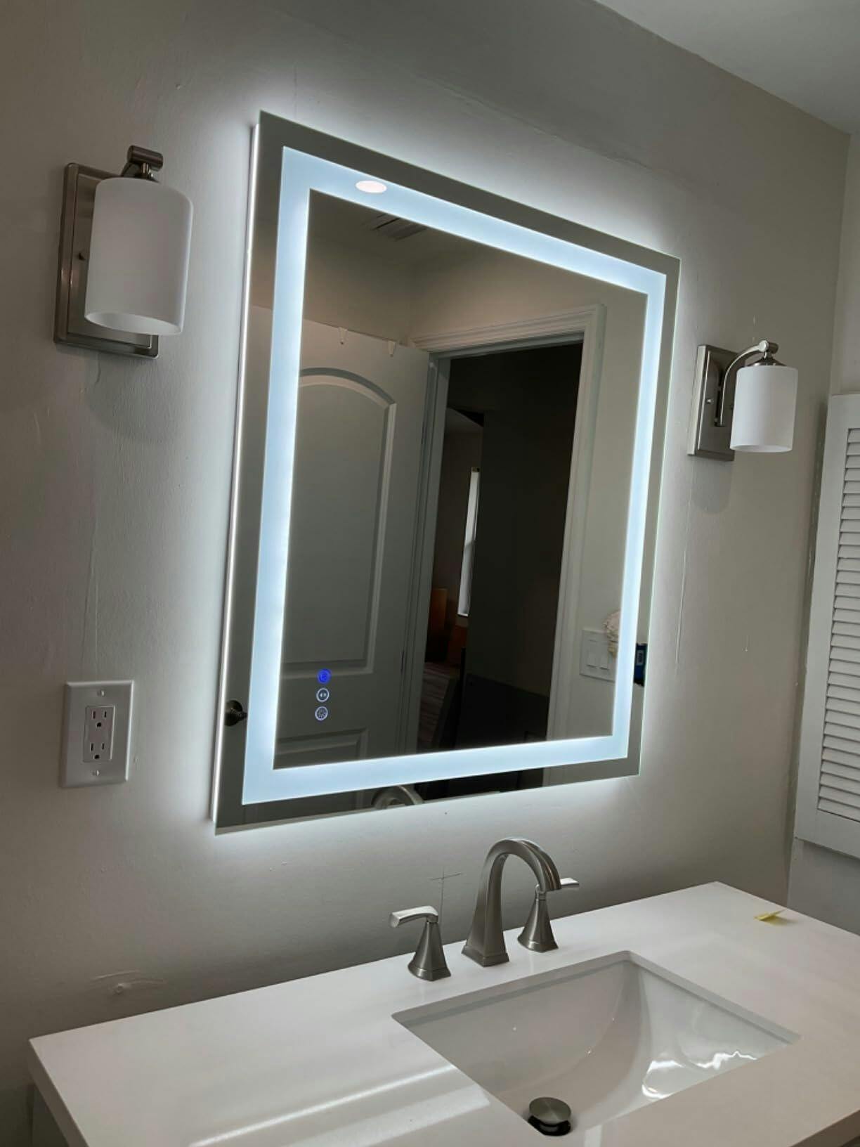 Featuring anti-fog technology, this bathroom mirror remains clear and fog-free even in a steamy bathroom. This LED bathroom mirror is perfect for those who want a clear image during and after showering.The defogging function ensures a clear view, saves energy, and completely removes fog from the mirror in just 5-10 minutes.