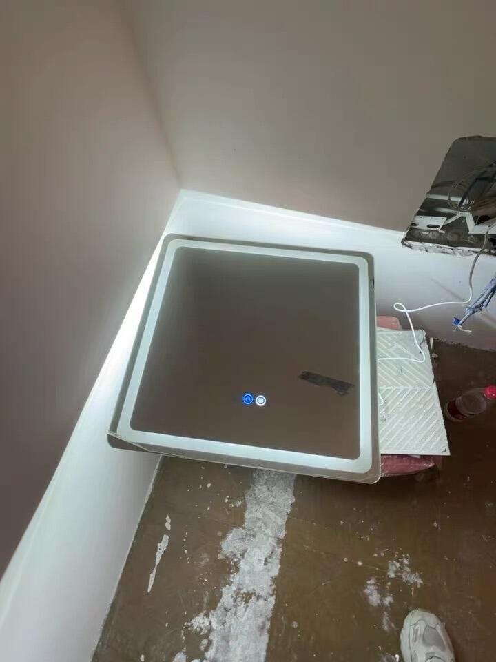 5. Disconnect the main power supply, connect (insert) the mirror's power cord or plug, and then mount the mirror to the wall.